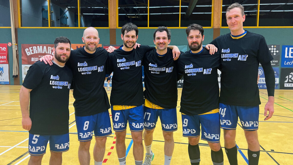 Nach fast 25 Jahren Handball beenden die Schwabmünchner Legenden Peter Bürgle, Manuel Reinsch, Tobias Müller, Andreas Müller, Alexander Kreutz und Matthias Gerlich ihre Karrieren als aktive Spieler.