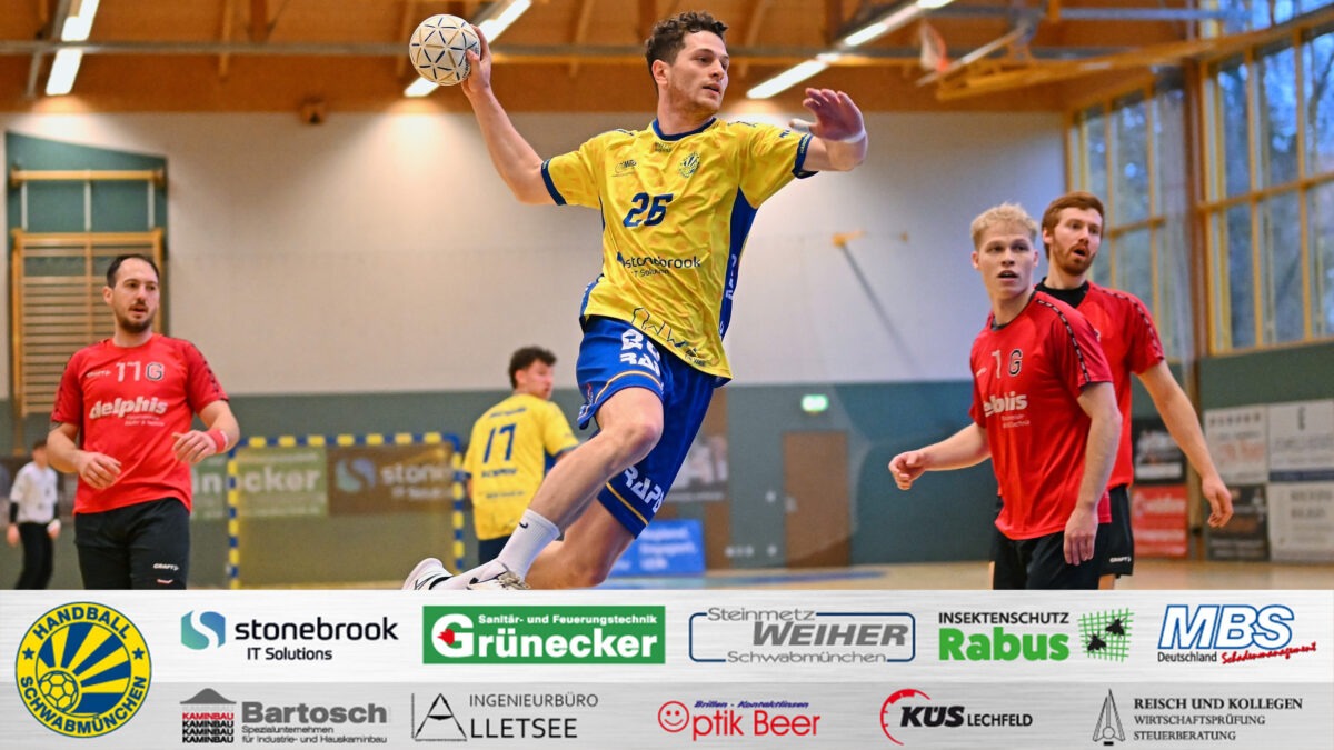 In der zweiten Halbzeit bemühte sich Schwabmünchen weiterhin das Spiel zu drehen. Doch technische Fehler, eine ineffiziente Verteidigung und zu viele vergebene Chancen machten es den Gelb-Blauen schwer das Spiel zu kontrollieren. Mehrere Zwei-Minuten-Strafen führten dazu, dass die Heimmannschaft oft in Unterzahl agieren musste, was die Gäste eiskalt ausnutzten und ihre Führung bis zum Stand von 19:26 in der 42. Minute kontinuierlich ausbauten. Nach einer Umstellung der Abwehrformation kämpften sich die Menkinger Stück für Stück wieder an Göggingen heran, doch fünf Minuten vor Abpfiff schien die Partie beim Stand von 30:34 eigentlich entschieden. Dass man im Handball niemals nie sagen sollte, zeigten die letzten Spielminuten: Göggingen zeigte gegen die offensive Abwehr der Hausherren ein ums andere Mal Nerven, SMÜ fand endlich zur eigenen Abschlussstärke zurück und startete die Aufholjagd. Durch Gegenstoßtore verkürzte man auf 34:35. Kurz vor Schluss konnte Leo Reichenberger dann erneut den Ball erobern und vor den Augen der fassungslosen Gögginger zwei Sekunden vor Abpfiff nervenstark im gegnerischen Tor versenken. Der nach diesem Spielverlauf unerwartete Endstand von 35:35 sorgte für großen Jubel beim Team und den Fans und sichert den Gelb-Blauen trotz ausbaufähiger Leistung zumindest einen Punkt.