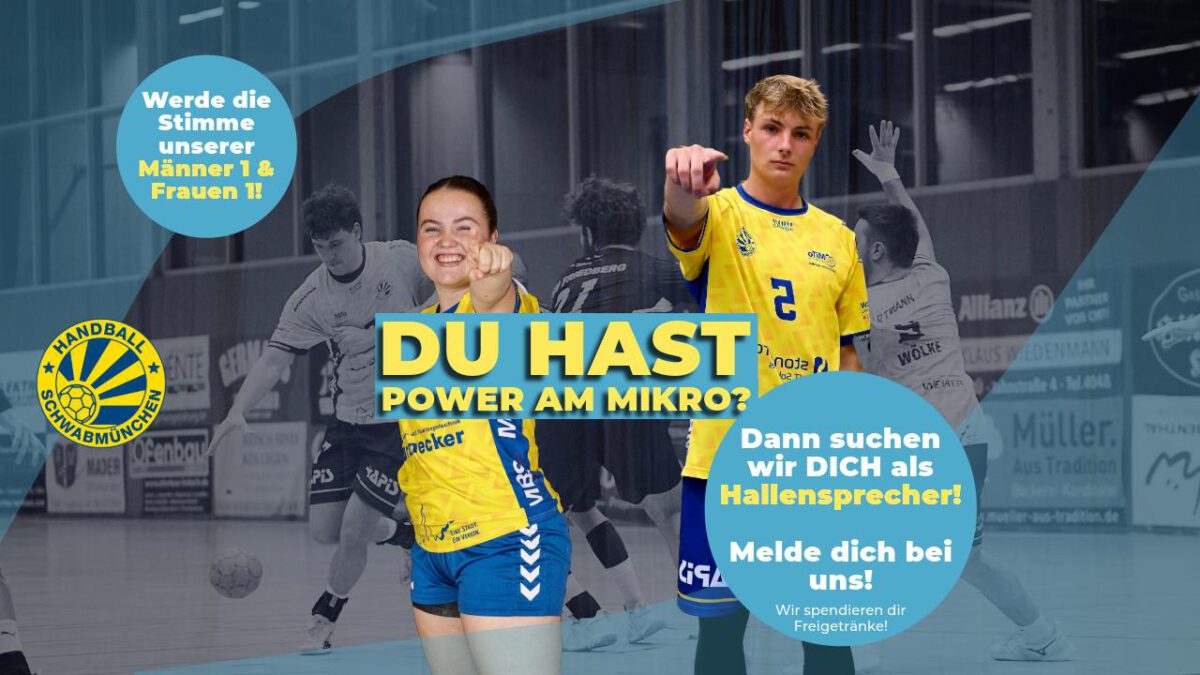 Der TSV Schwabmünchen Handball ist auf der Suche nach einer motivierten und stimmgewaltigen Person, die unsere Heimspiele der Männer 1 und Frauen 1 als Hallensprecher*in begleitet!